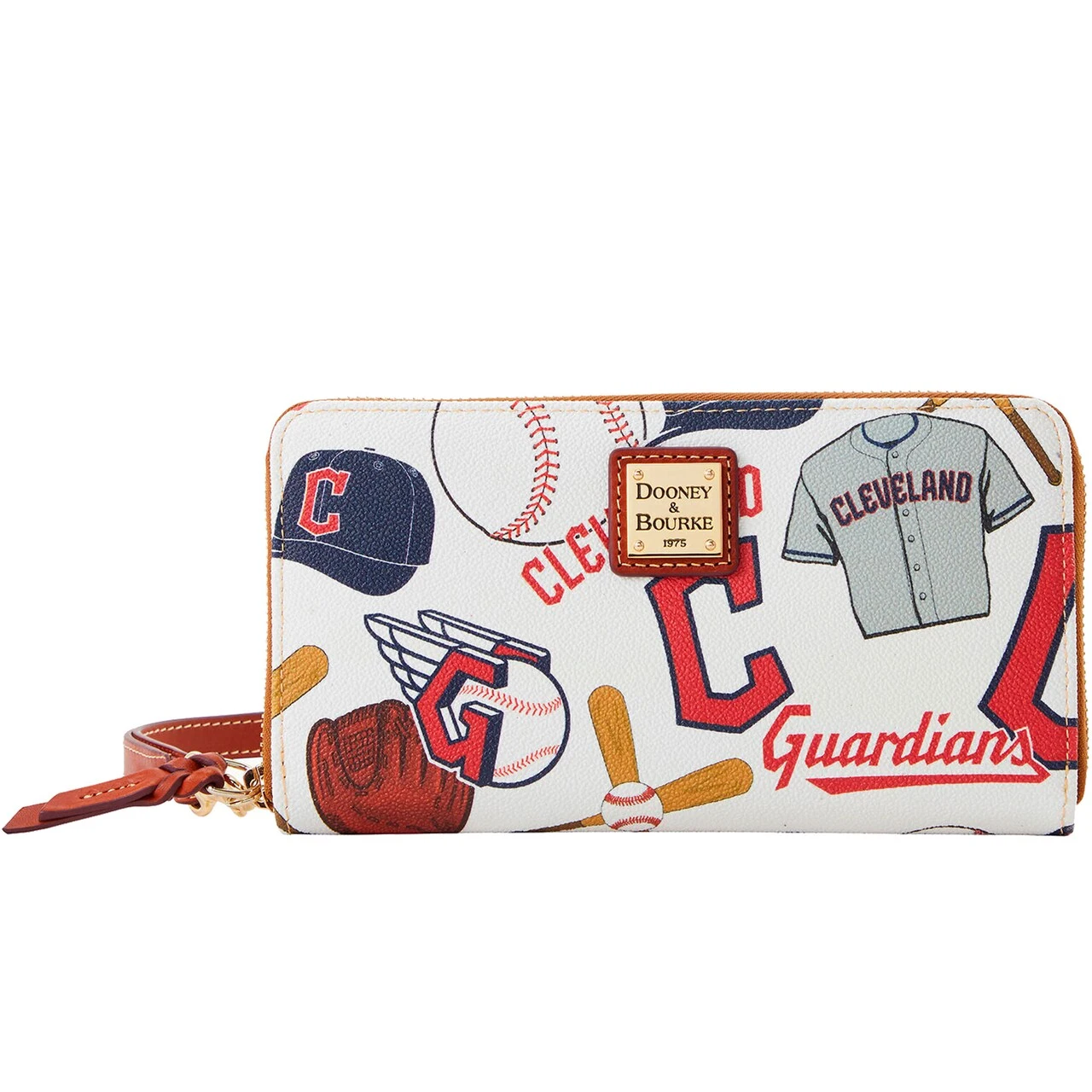 Show love for your Cleveland Guardians every day with this versatile Game Day Large Zip-Around wristlet from Dooney & Bourke. It features Cleveland Guardians graphics printed all over and a detachable leather strap for easy carrying. Multiple pockets and card slots also provide plenty of spots for essential items.