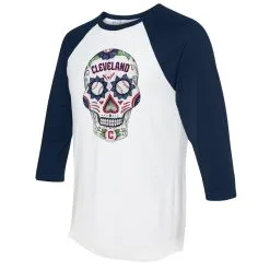 Women’s Cleveland Guardians Tiny Turnip White/Navy Sugar Skull 3/4-Sleeve Raglan T-Shirt