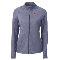 Women’s Cleveland Guardians Cutter & Buck Heather Navy Adapt Eco Knit Raglan Full-Zip Jacket