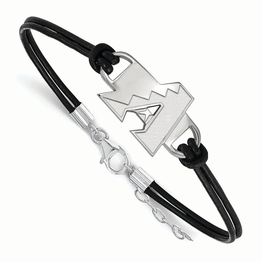 LogoArt Women’s Arizona Diamondbacks Sterling Silver Small Center Leather Bracelet