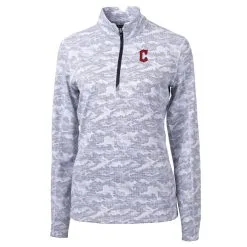 Women’s Cleveland Guardians Cutter & Buck Gray DryTec Traverse Stretch Quarter-Zip Pullover Top
