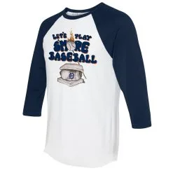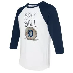 Women’s Detroit Tigers Tiny Turnip White/Navy Sundae Helmet 3/4-Sleeve Raglan T-Shirt