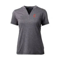 Women’s Cleveland Guardians Cutter & Buck Heather Charcoal DryTec Forge Stretch V-Neck Blade Top