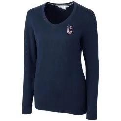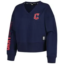 Women’s Cleveland Guardians DKNY Sport Navy Lily V-Neck Pullover Sweatshirt
