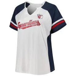Profile Women’s Cleveland Guardians White/Navy Plus Size Notch Neck T-Shirt