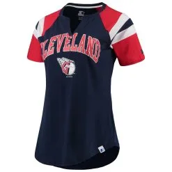 Women’s Cleveland Guardians Starter Navy/Red Game On Notch Neck Raglan T-Shirt