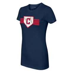 Women’s Cleveland Guardians Tiny Turnip Navy Baseball Flag T-Shirt