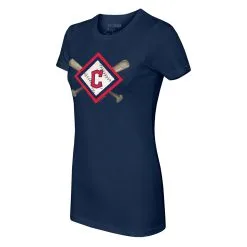 Women’s Cleveland Guardians Tiny Turnip Navy Diamond Cross Bats T-Shirt
