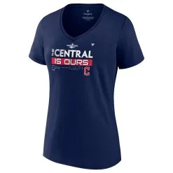 Women’s Cleveland Guardians Fanatics Branded Navy 2022 Postseason Locker Room V-Neck T-Shirt
