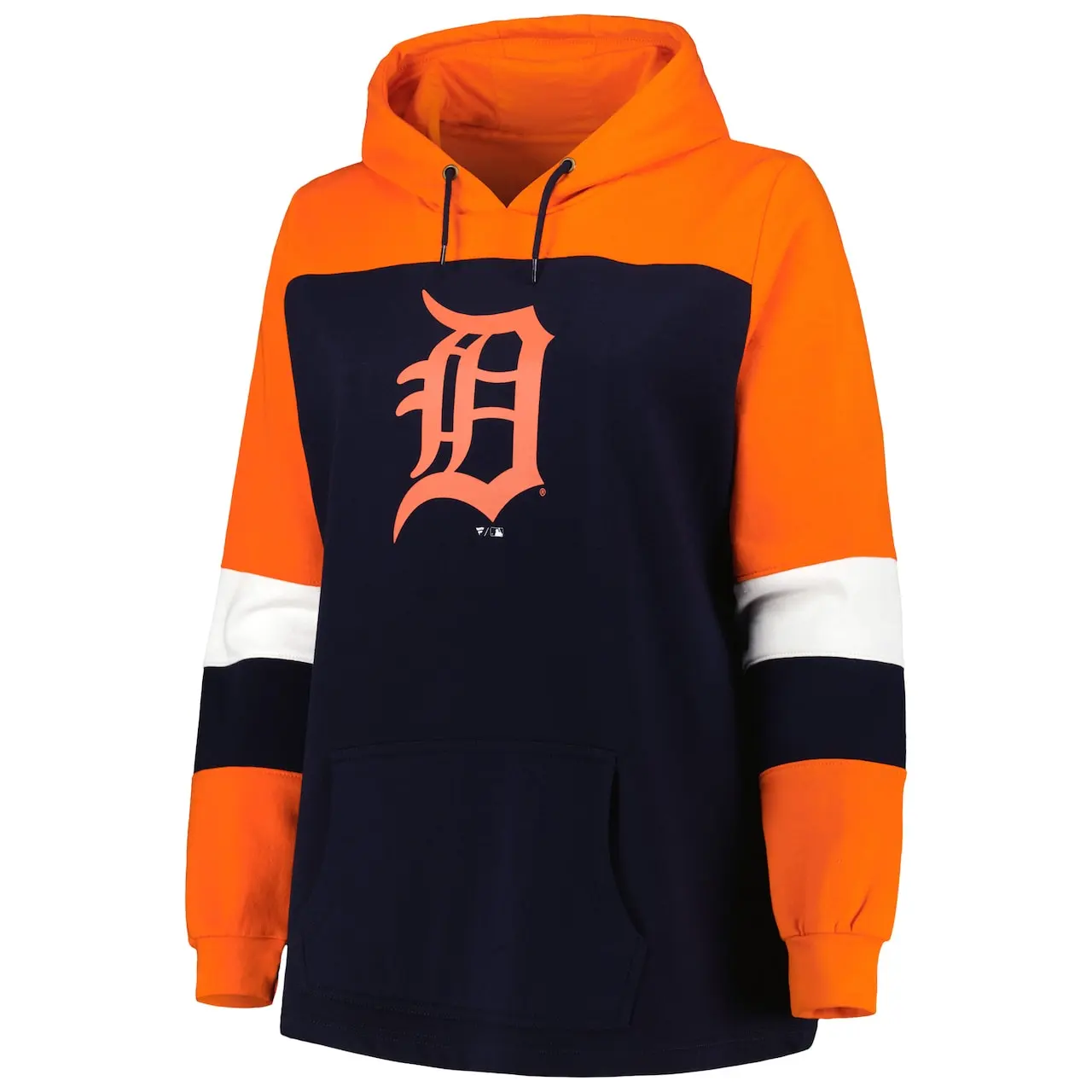 Profile Women’s Detroit Tigers Navy Plus Size Colorblock Pullover Hoodie