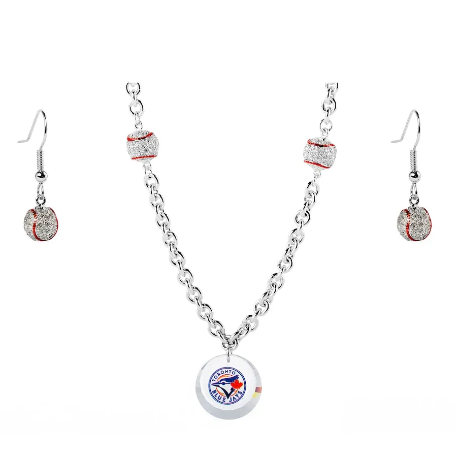 Celebrate your love for the Toronto Blue Jays with this Swarovski baseball necklace and earring set!