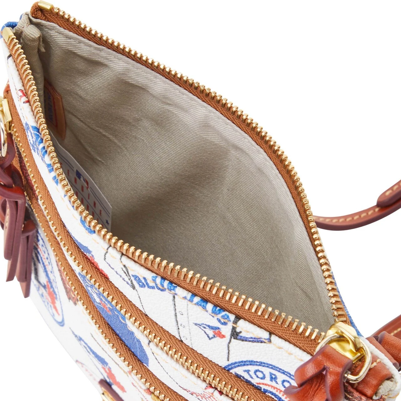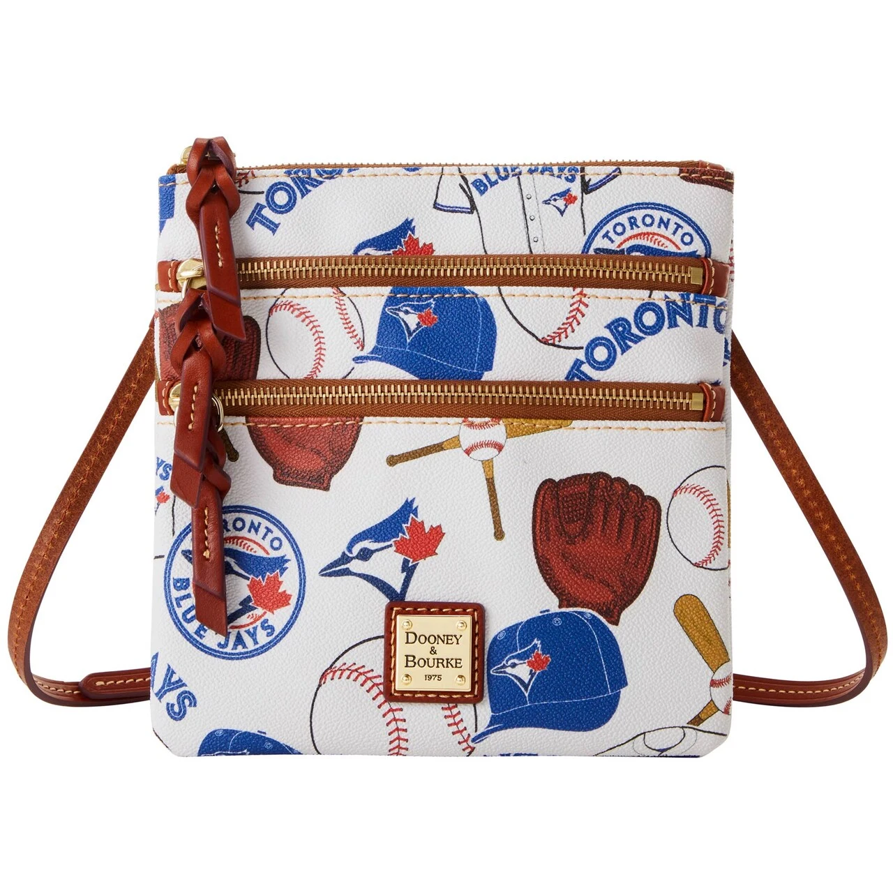 Merge your sense of fashion and Toronto Blue Jays devotion with this Game Day Triple-Zip crossbody purse from Dooney & Bourke. It features fun Toronto Blue Jays graphics printed all over and multiple pockets to store your must-have items. You can also adjust the leather strap to your preferred carrying length.