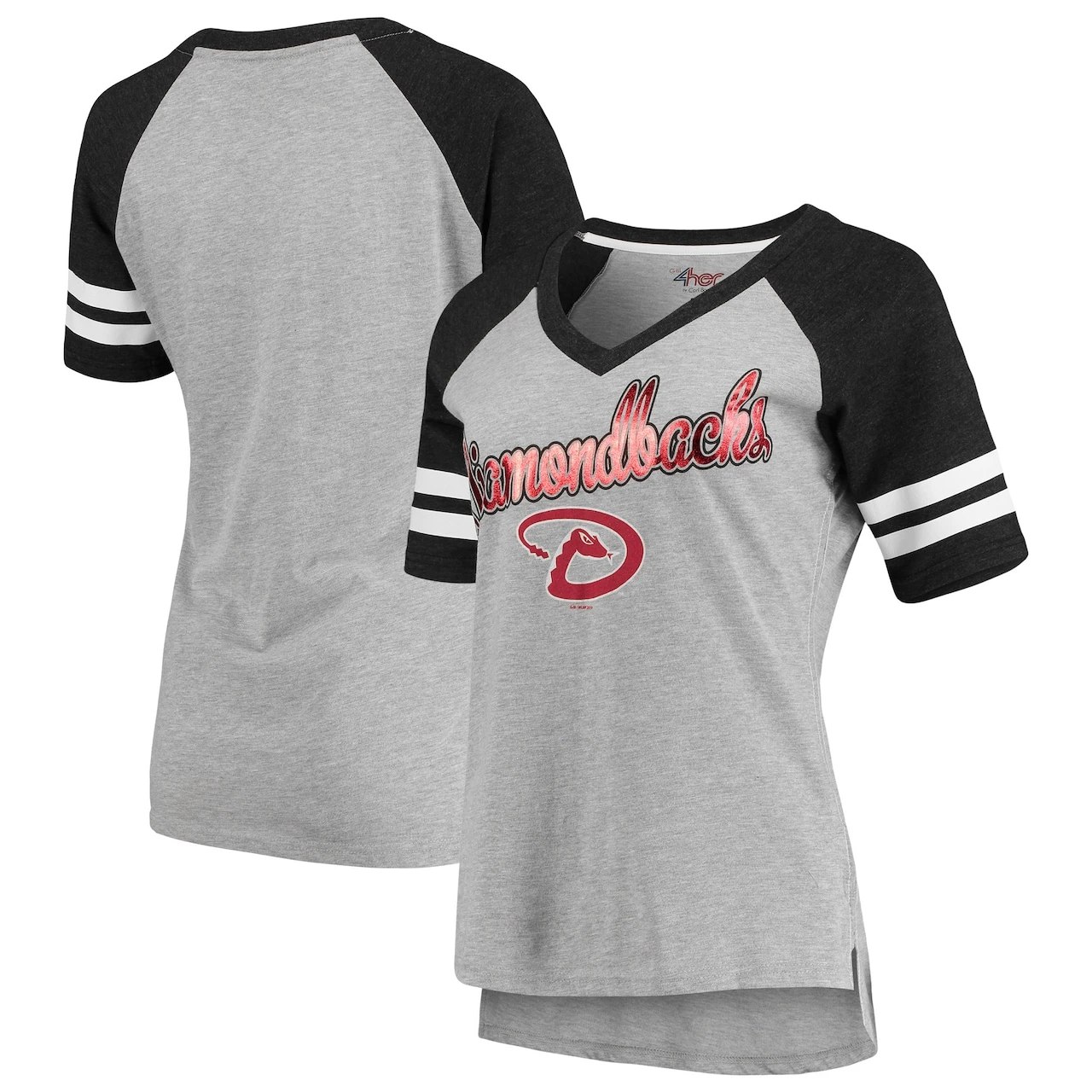 Women’s Arizona Diamondbacks G-III 4Her By Carl Banks Gray/Black Goal Line Raglan V-Neck T-Shirt