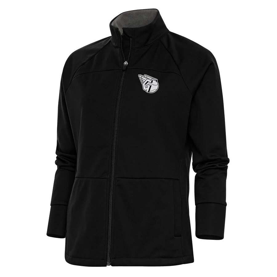Women’s Cleveland Guardians Antigua Black Brushed Metallic Links Full-Zip Golf Jacket