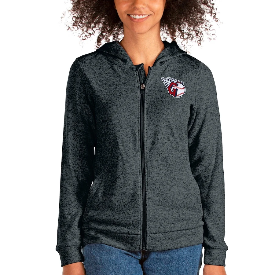Women’s Cleveland Guardians Antigua Heather Charcoal Absolute Full-Zip Hoodie