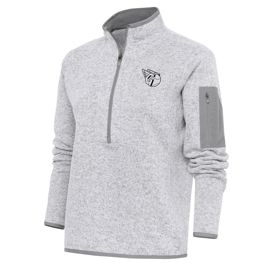 Women’s Cleveland Guardians Antigua Heather Gray Brushed Metallic Fortune Half-Zip Pullover Jacket