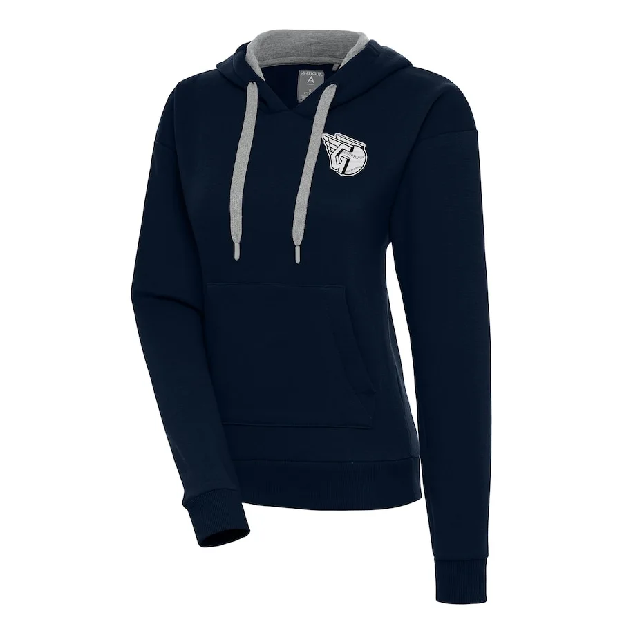 Women’s Cleveland Guardians Antigua Navy Brushed Metallic Victory Pullover Hoodie