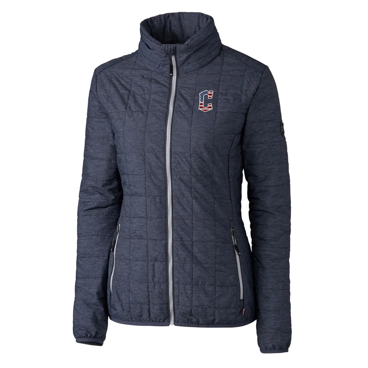Women’s Cleveland Guardians Cutter & Buck Heather Navy Americana Logo Rainier PrimaLoft Eco Insulated Full-Zip Puffer Jacket