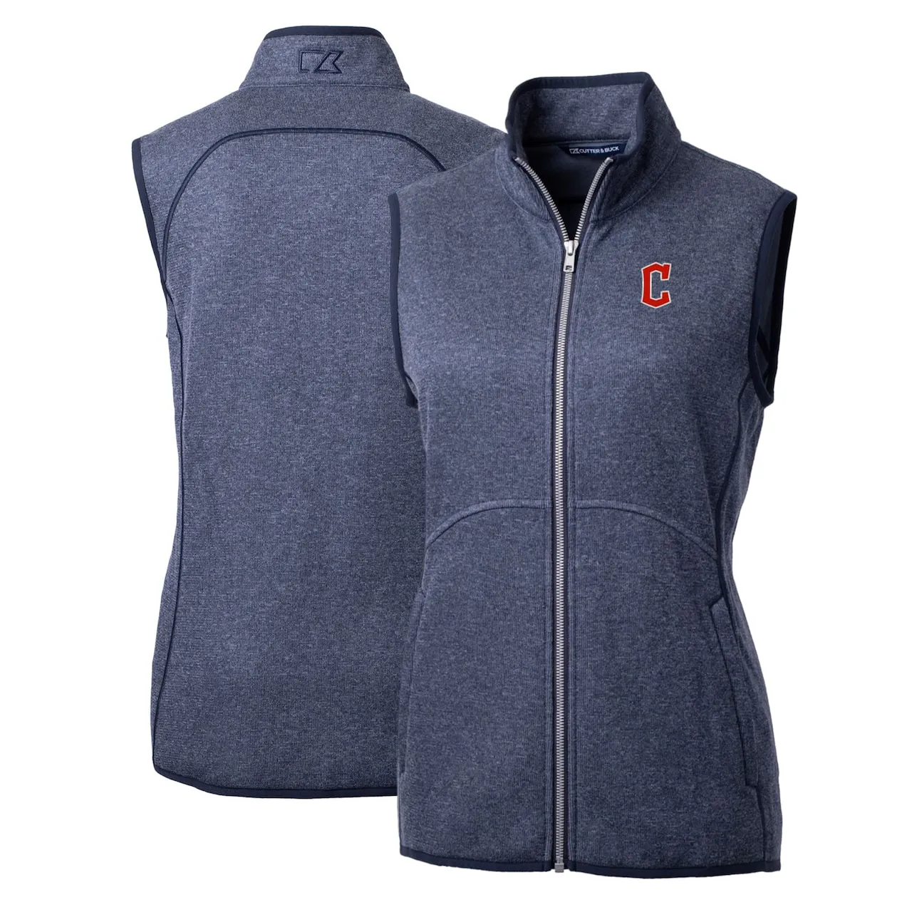 Women’s Cleveland Guardians Cutter & Buck Heathered Navy Mainsail Sweater-Knit Full-Zip Vest