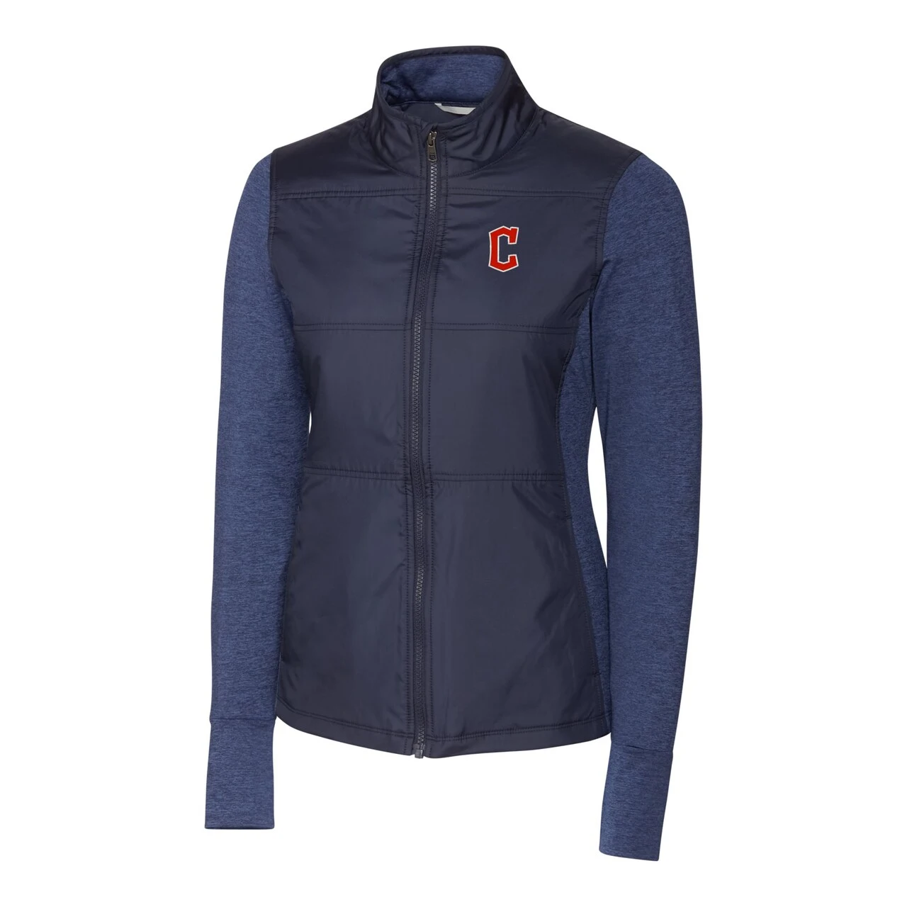 Women’s Cleveland Guardians Cutter & Buck Navy DryTec Stealth Hybrid Quilted Full-Zip Windbreaker Jacket