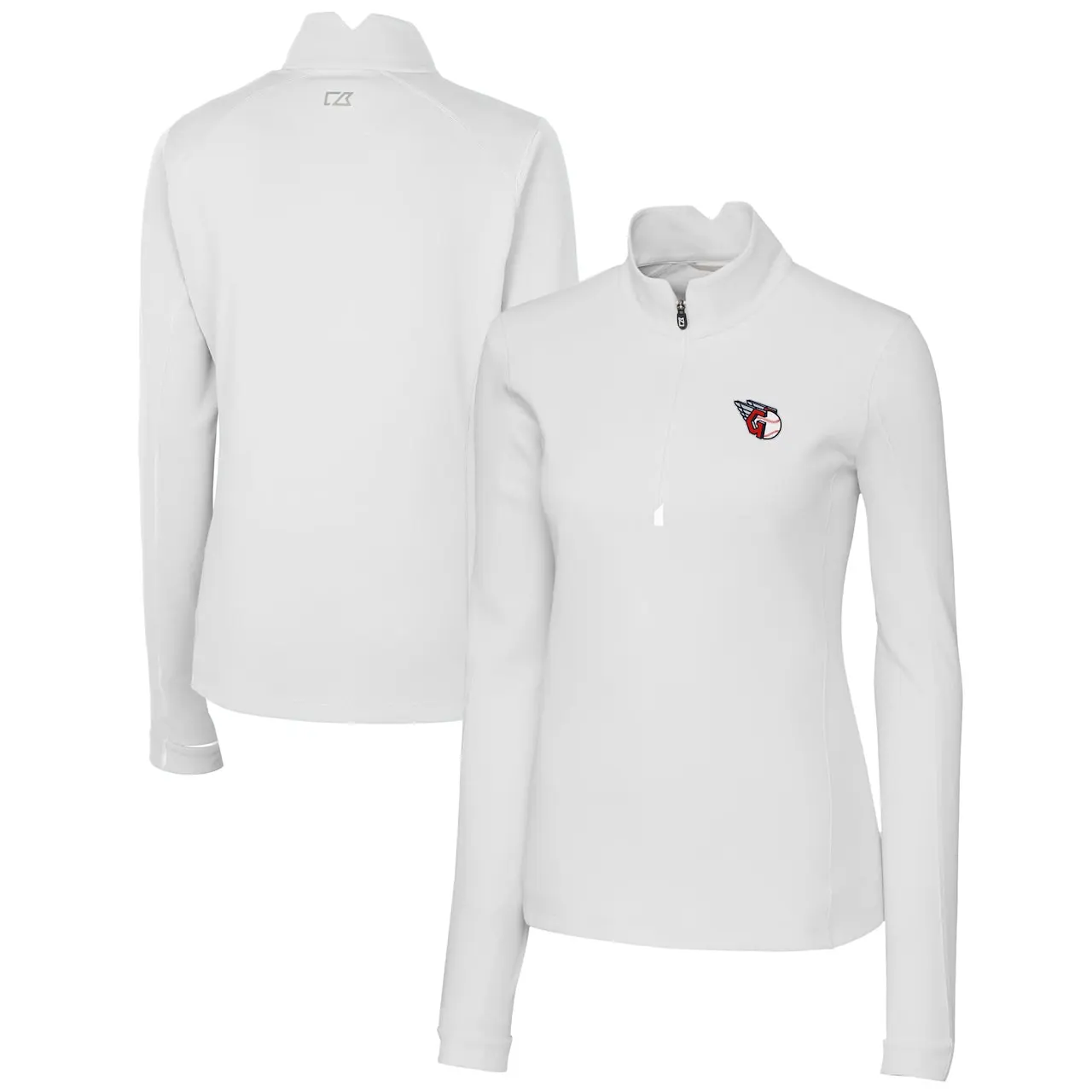 Women’s Cleveland Guardians Cutter & Buck White DryTec Traverse Stretch Quarter-Zip Pullover Top