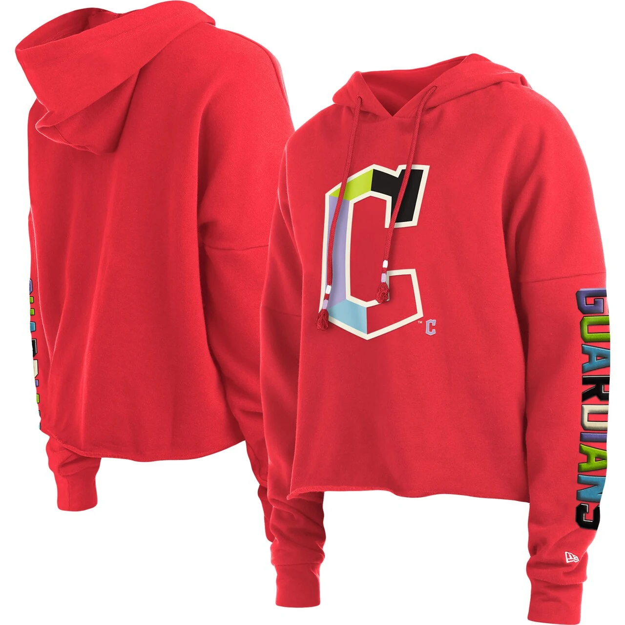 Women’s Cleveland Guardians New Era Red Fashion High Hip Pullover Hoodie
