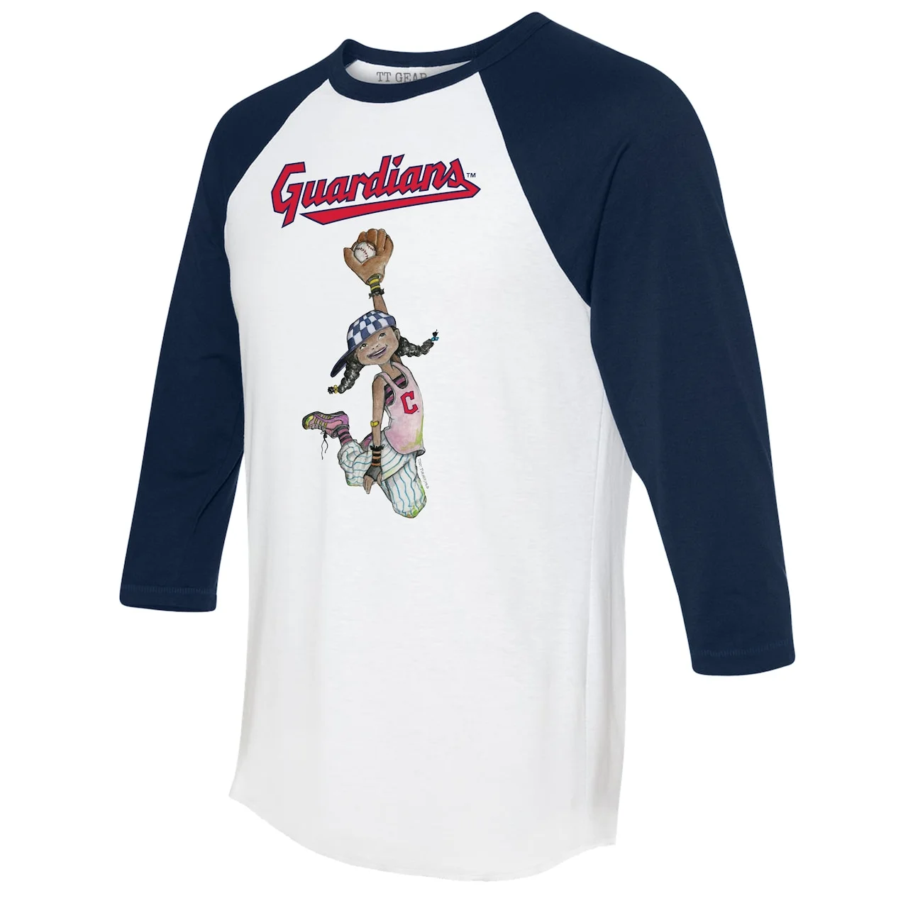 Women’s Cleveland Guardians Tiny Turnip White/Navy Jada 3/4-Sleeve Raglan T-Shirt