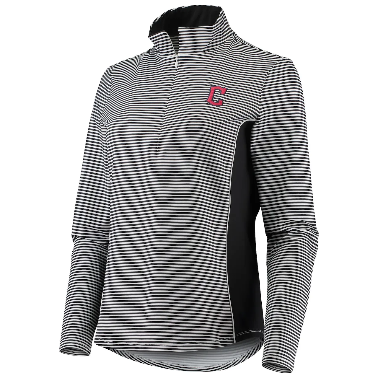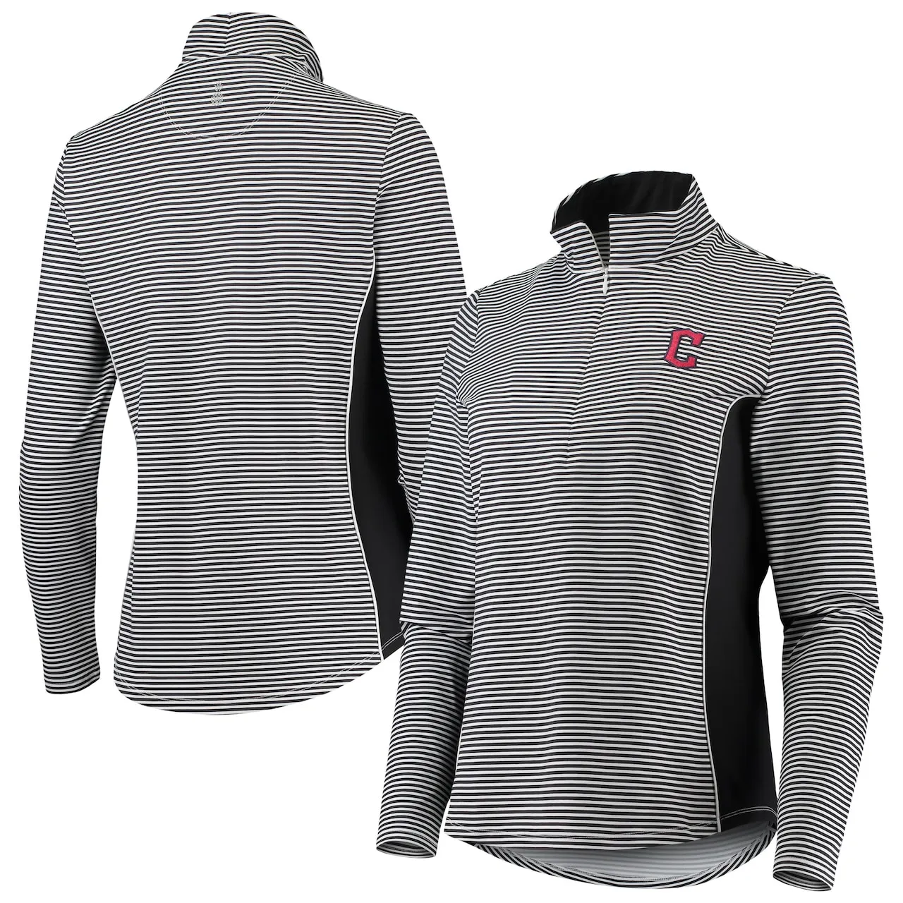 Women’s Cleveland Guardians Tommy Bahama Black Aubrey Stripe Block IslandZone Half-Zip Jacket