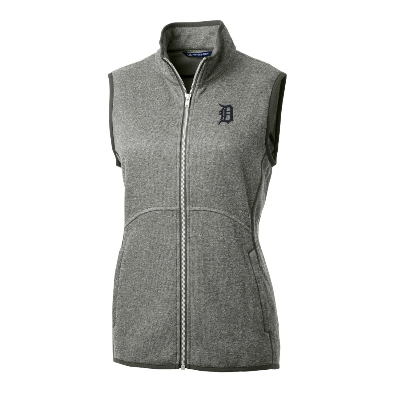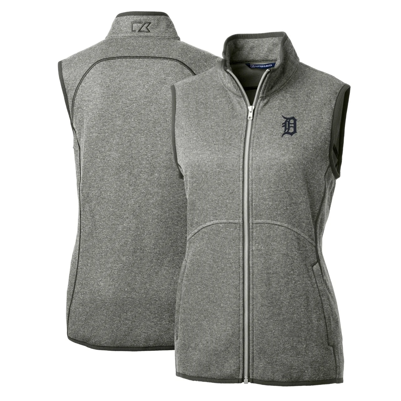 Women’s Detroit Tigers Cutter & Buck Heathered Gray Mainsail Sweater-Knit Full-Zip Vest
