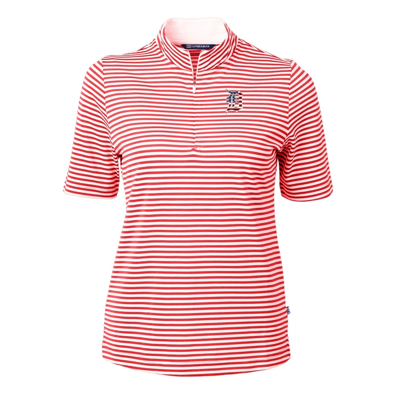 Women’s Detroit Tigers Cutter & Buck Red Virtue Eco Pique Stripe Recycled Quarter-Zip Pullover Top