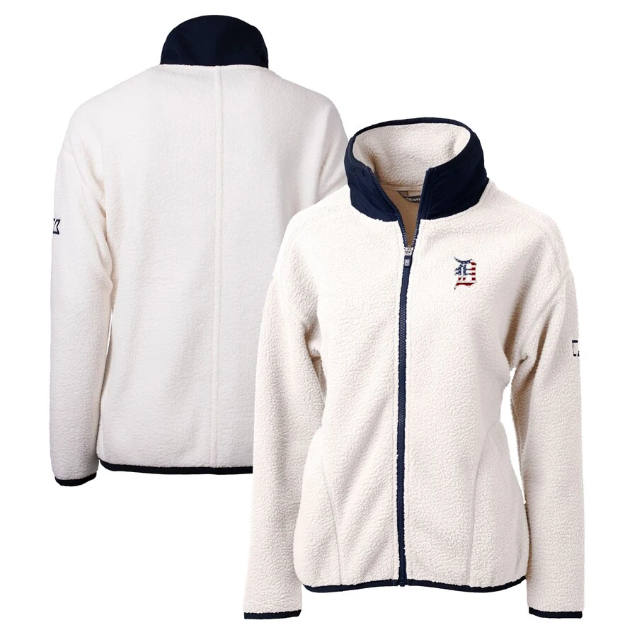 Women’s Detroit Tigers Cutter & Buck White Americana Logo Cascade Eco Sherpa Full-Zip Fleece Jacket