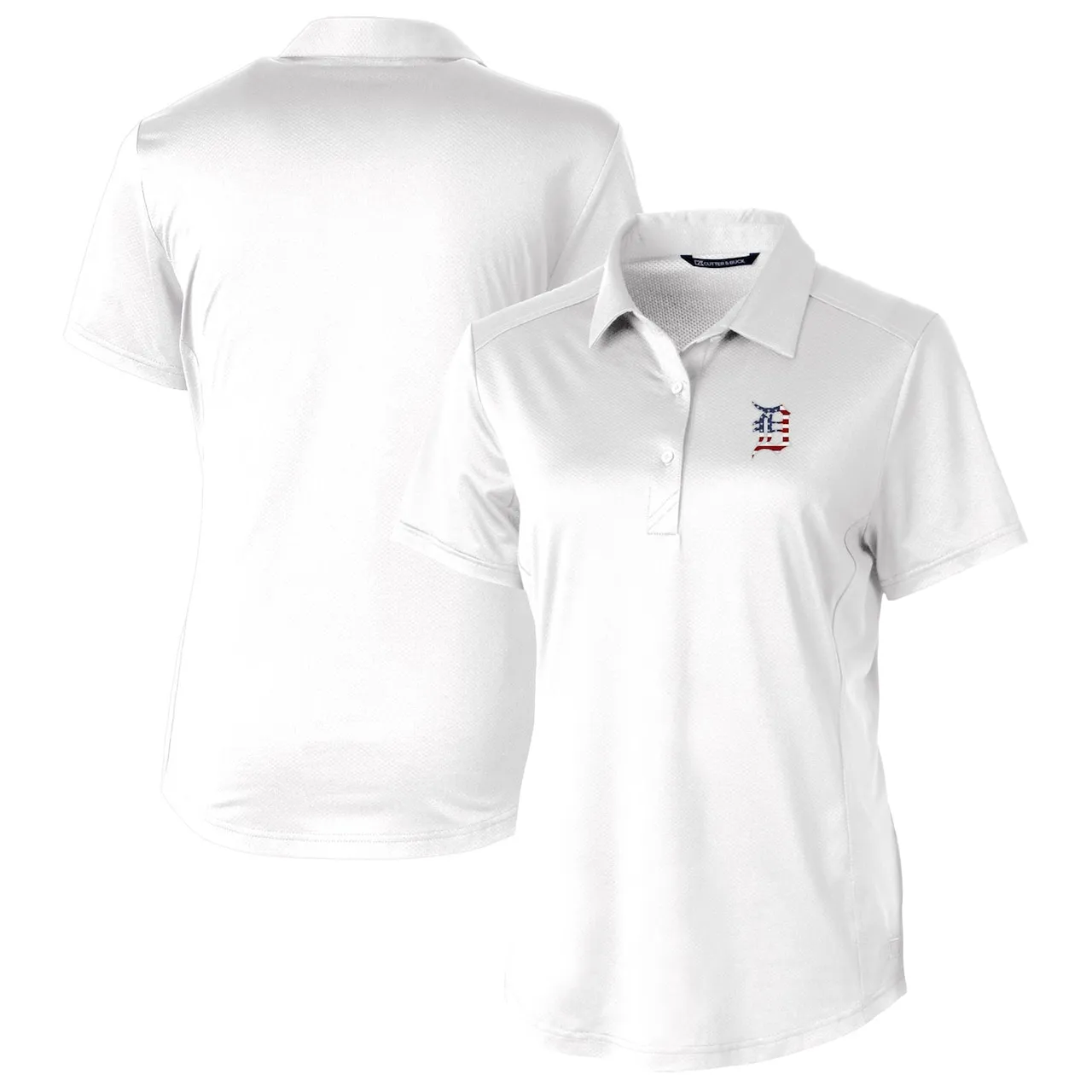 Women’s Detroit Tigers Cutter & Buck White Americana Logo Prospect DryTec Textured Stretch Polo