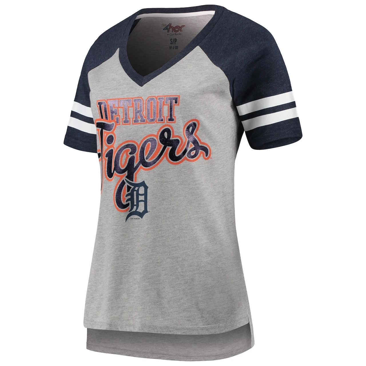 Women’s Detroit Tigers G-III 4Her By Carl Banks Gray/Navy Goal Line Raglan V-Neck T-Shirt