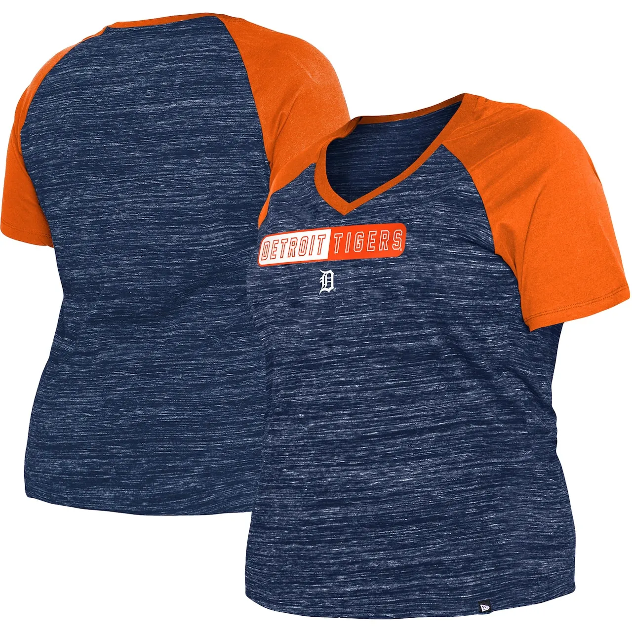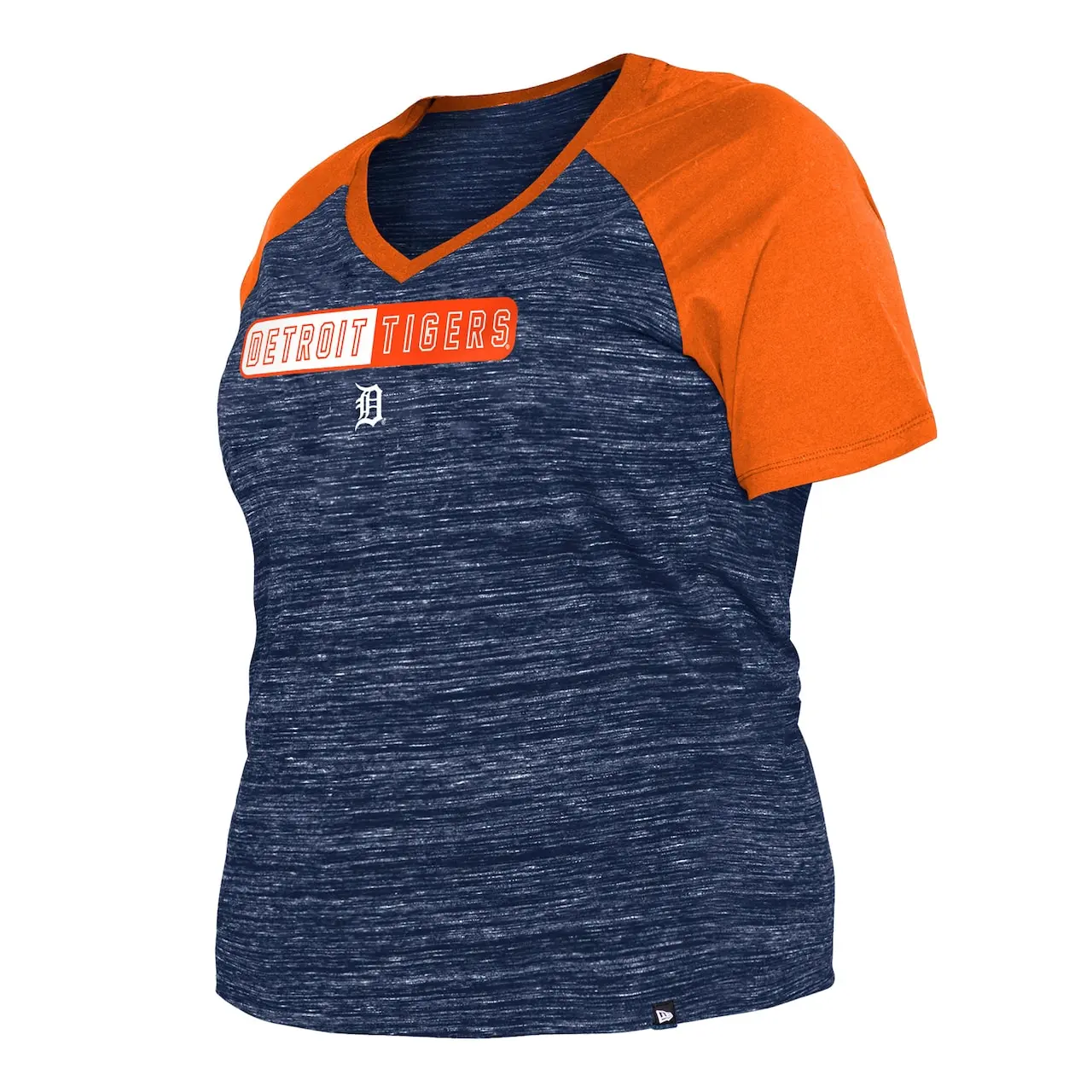 Women’s Detroit Tigers New Era Navy Plus Size Space Dye Raglan V-Neck T-Shirt