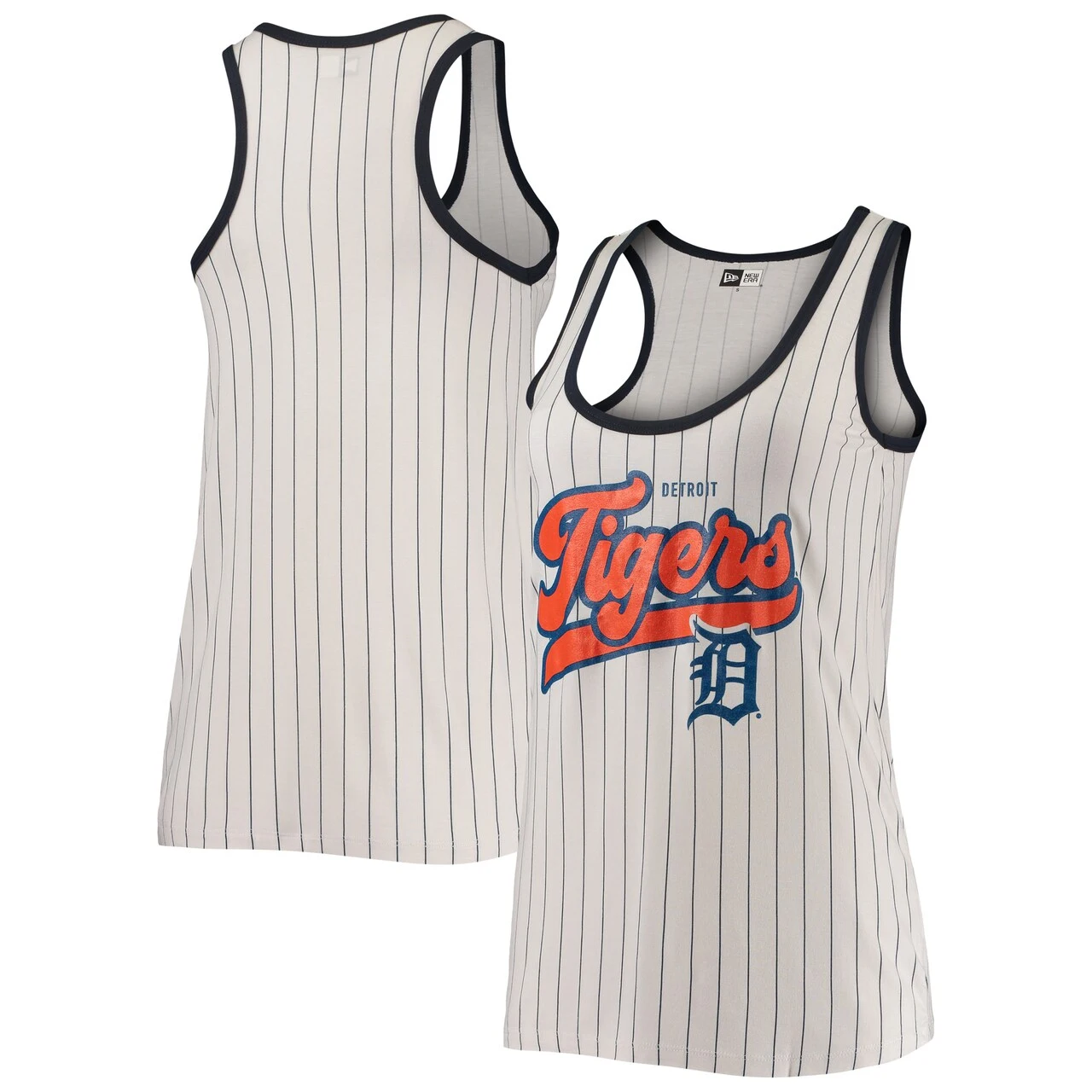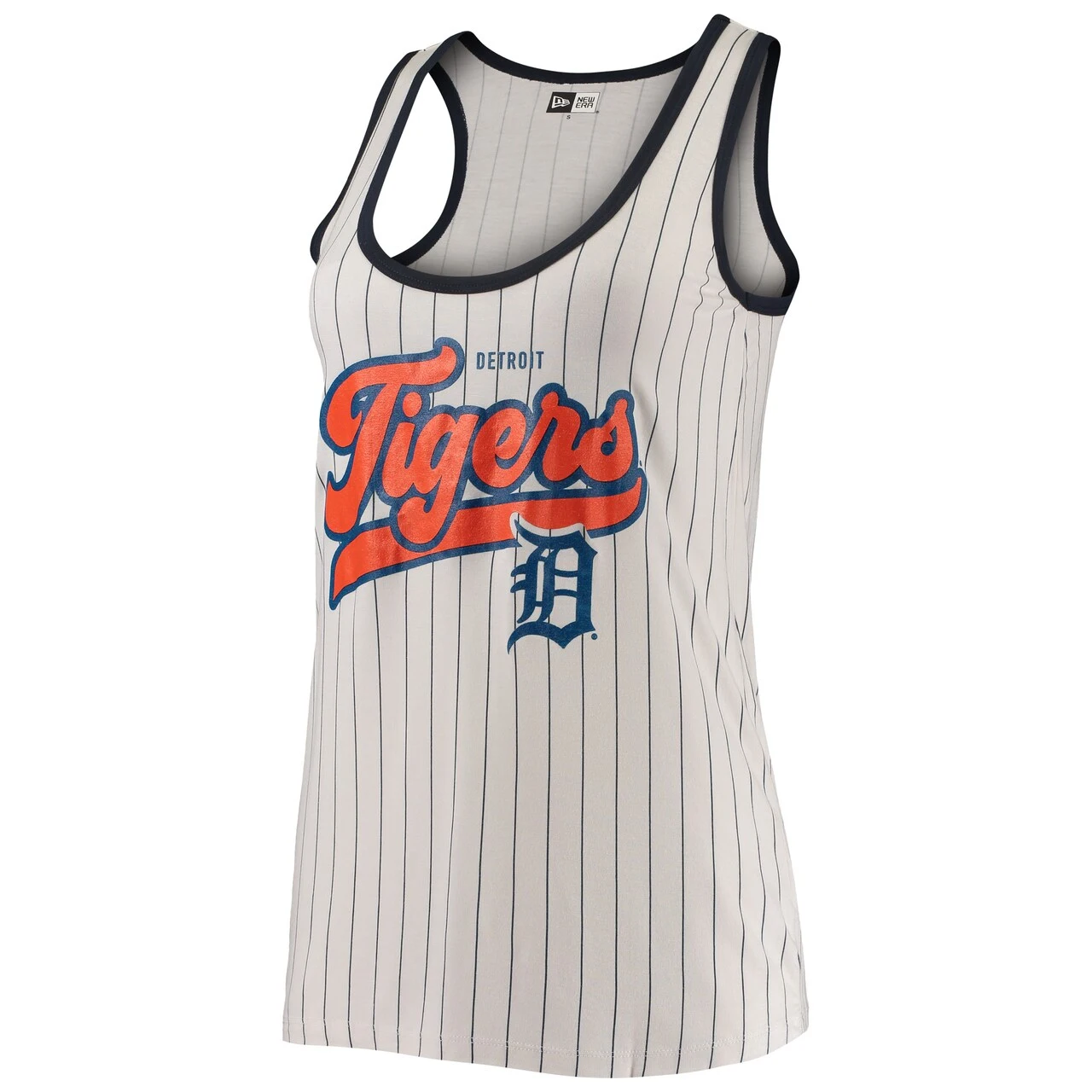 Women’s Detroit Tigers New Era White/Navy Pinstripe Scoop Neck Tank Top
