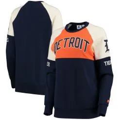Women’s Detroit Tigers Starter Orange/Navy Baseline Raglan Historic Logo Pullover Sweatshirt