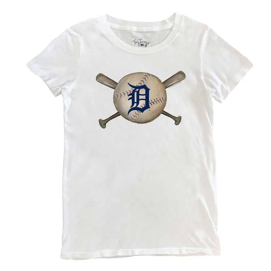 Women’s Detroit Tigers Tiny Turnip White Baseball Crossbats T-Shirt