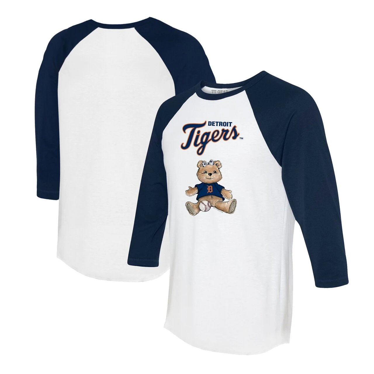 Women’s Detroit Tigers Tiny Turnip White/Navy Girl Teddy 3/4-Sleeve Raglan T-Shirt