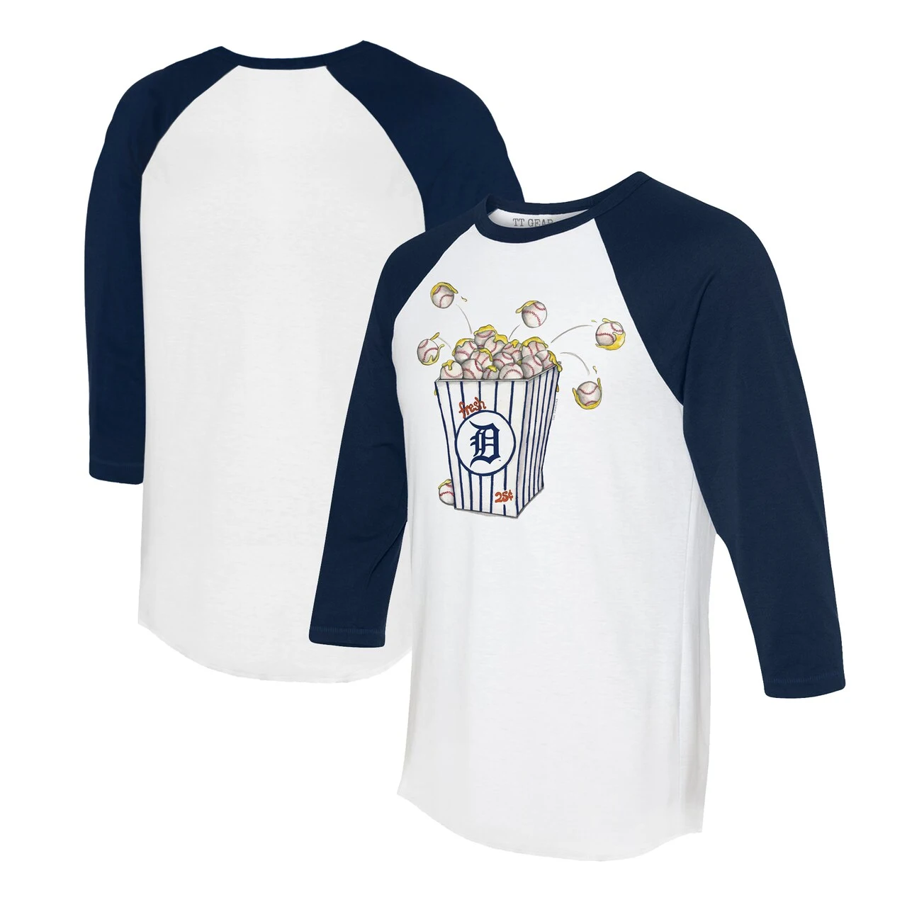 Women’s Detroit Tigers Tiny Turnip White/Navy Popcorn 3/4-Sleeve Raglan T-Shirt