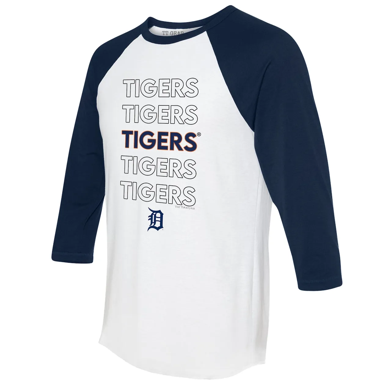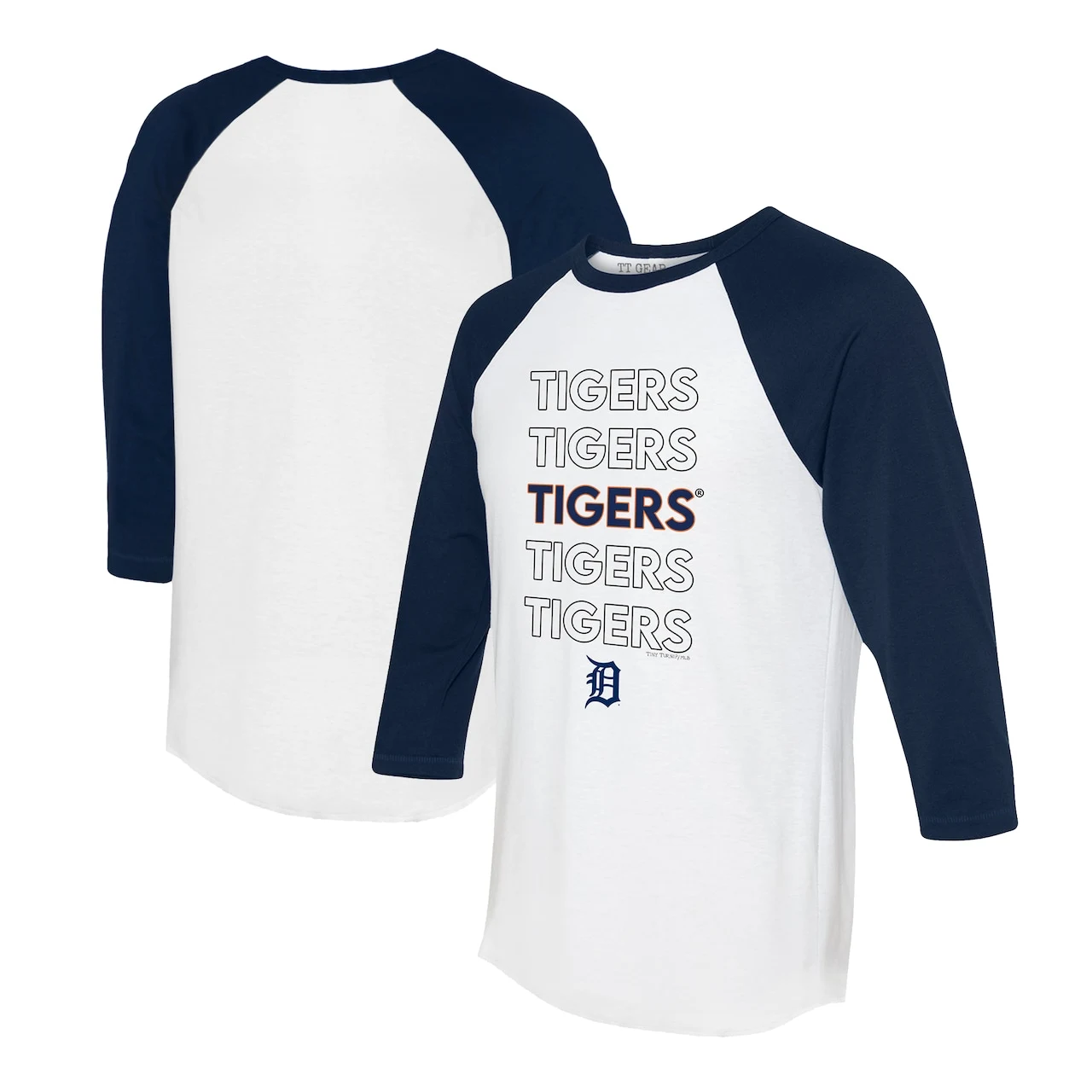 Women’s Detroit Tigers Tiny Turnip White/Navy Stacked 3/4-Sleeve Raglan T-Shirt
