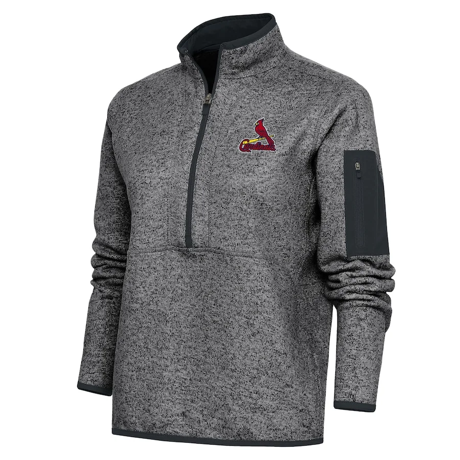 Women’s St. Louis Cardinals Antigua Heather Charcoal Logo Fortune Quarter-Zip Pullover Jacket