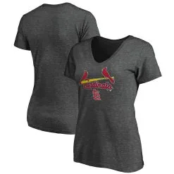 Women’s St. Louis Cardinals Fanatics Branded Heathered Charcoal Team Logo Lockup V-Neck T-Shirt