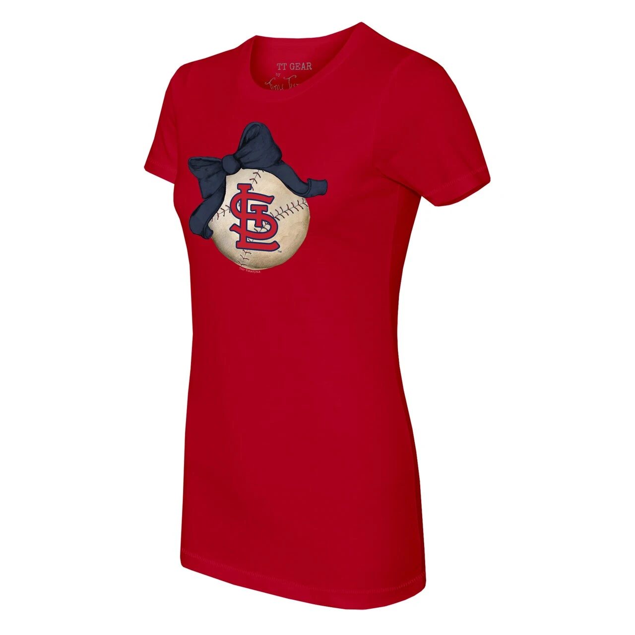 Women’s St. Louis Cardinals Tiny Turnip Red Baseball Bow T-Shirt