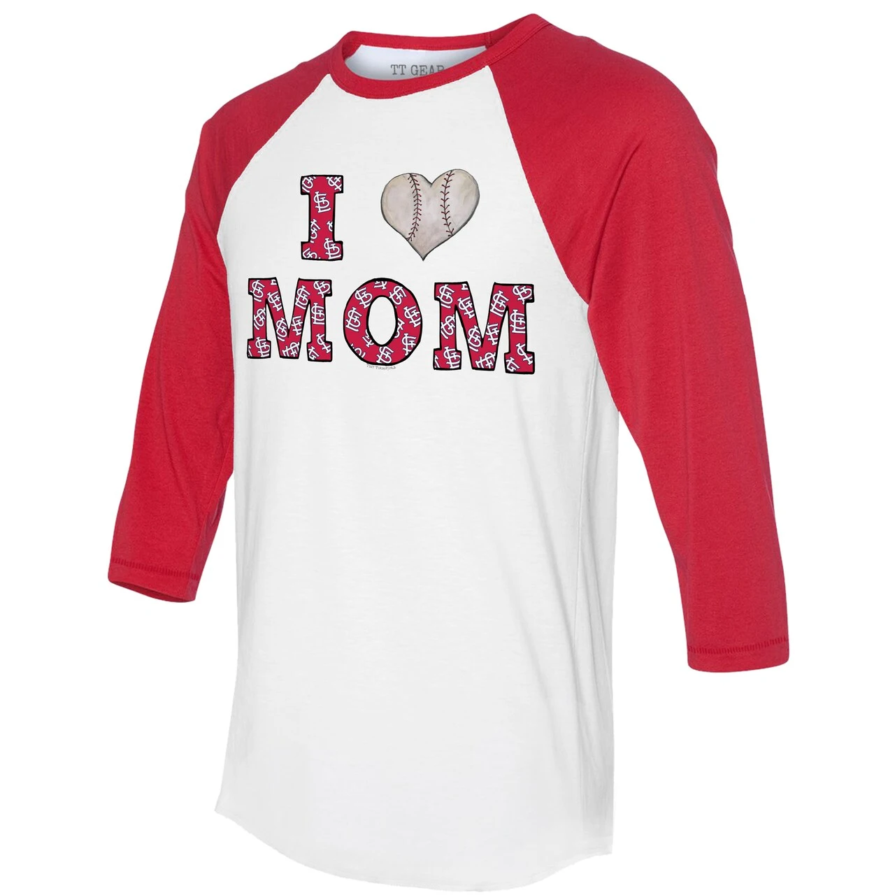 Women’s St. Louis Cardinals Tiny Turnip White/Red I Love Mom 3/4-Sleeve Raglan T-Shirt