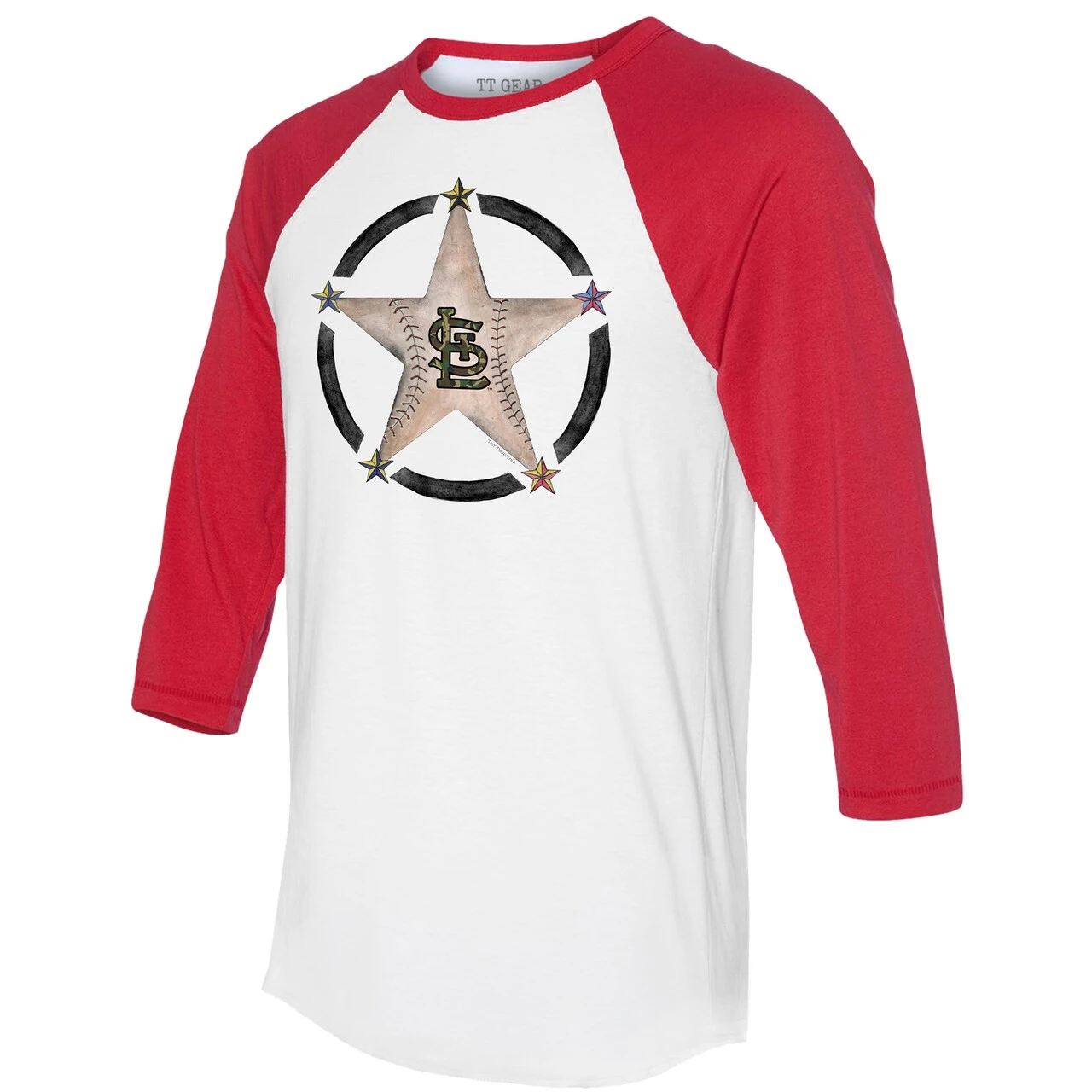 Women’s St. Louis Cardinals Tiny Turnip White/Red Military Star 3/4-Sleeve Raglan T-Shirt