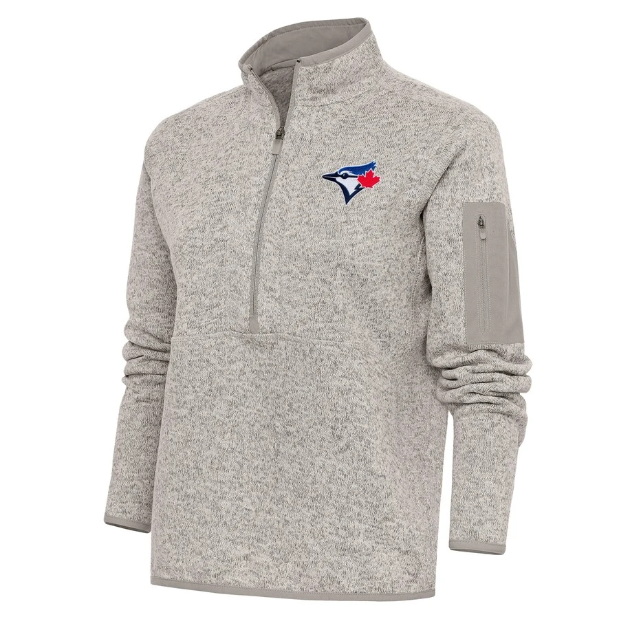 Women’s Toronto Blue Jays Antigua Oatmeal Logo Fortune Quarter-Zip Pullover Jacket