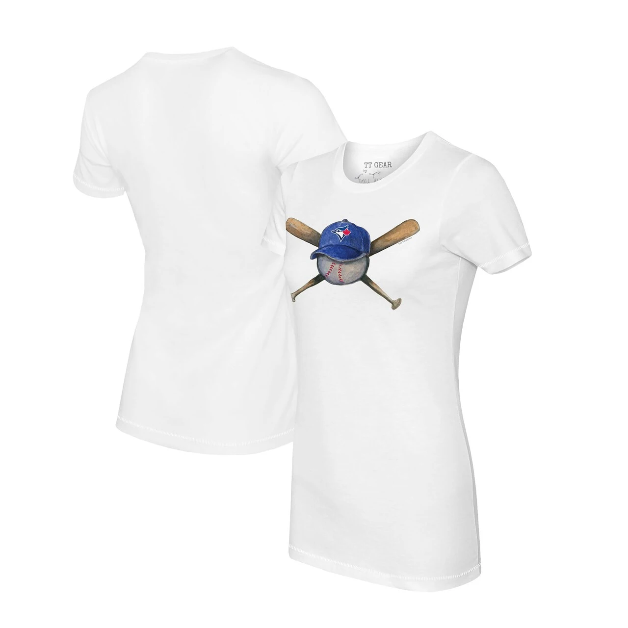Women’s Toronto Blue Jays Tiny Turnip White Hat Crossbats T-Shirt