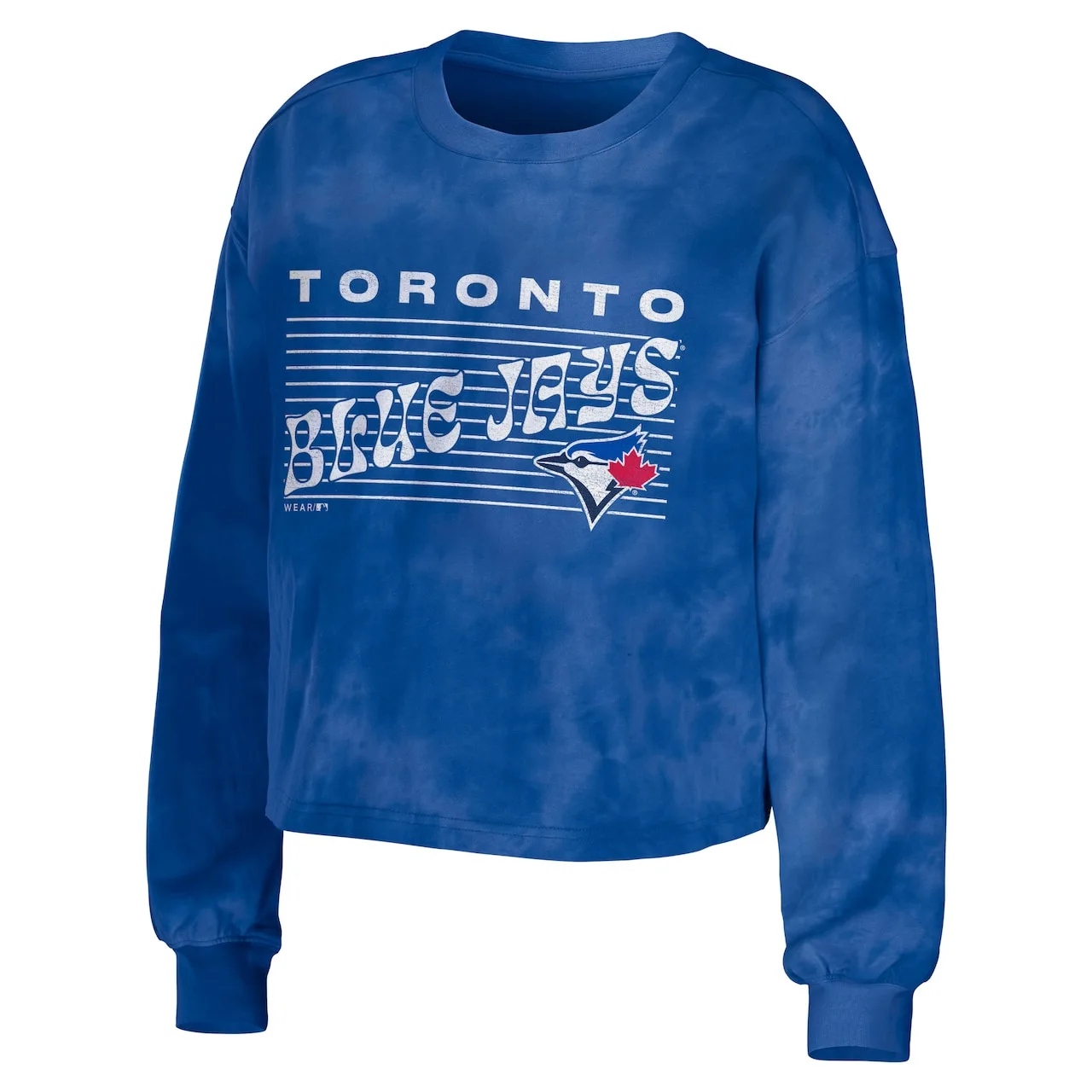 Women’s Toronto Blue Jays WEAR By Erin Andrews Royal Tie-Dye Cropped Pullover Sweatshirt & Shorts Lounge Set